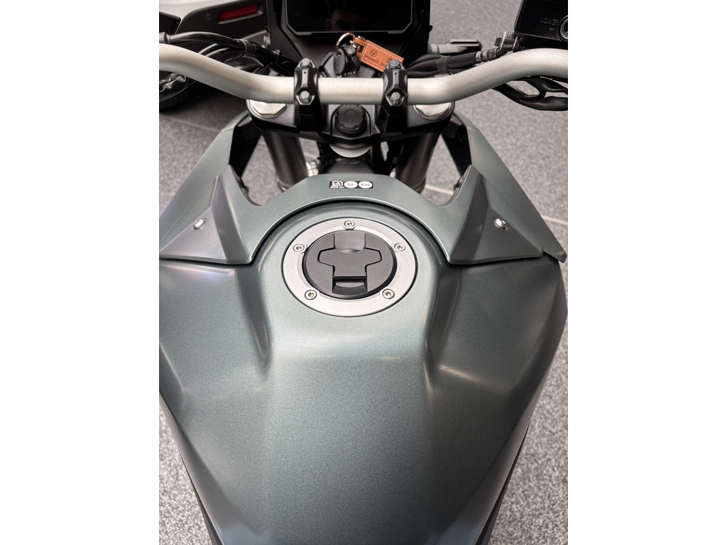 Schiterende V-Strom 800 in de gave kleur Metallic Mat Steel Green.